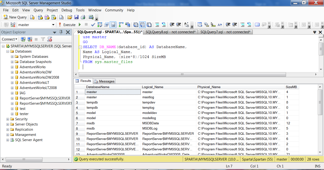 In the image below shown the query is run on my personal laptop where there are a few databases which i downloaded for testing purposes and also shows the file locations.