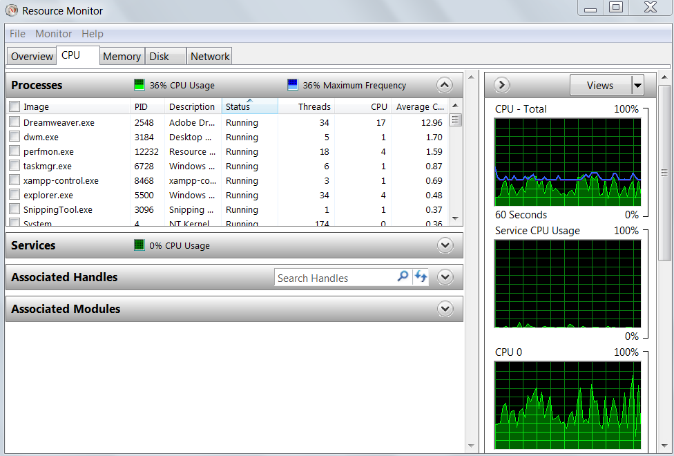 Perfmon: Perfmon is a great tool inbuilt into windows based OS systems which can be used for monitoring the CPU utilization. Perfmon can be utilized for setting up traces, configuring or defining counters and start monitoring by generating periodic reports or Ad-hoc reports
