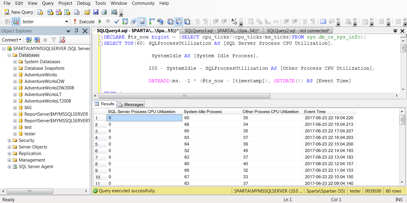 The image below is run on my personal computer and hence its howing very less numbers for the CPU usage of the sql server. however when you run the same over productionments/dev/testing environ we get different results.